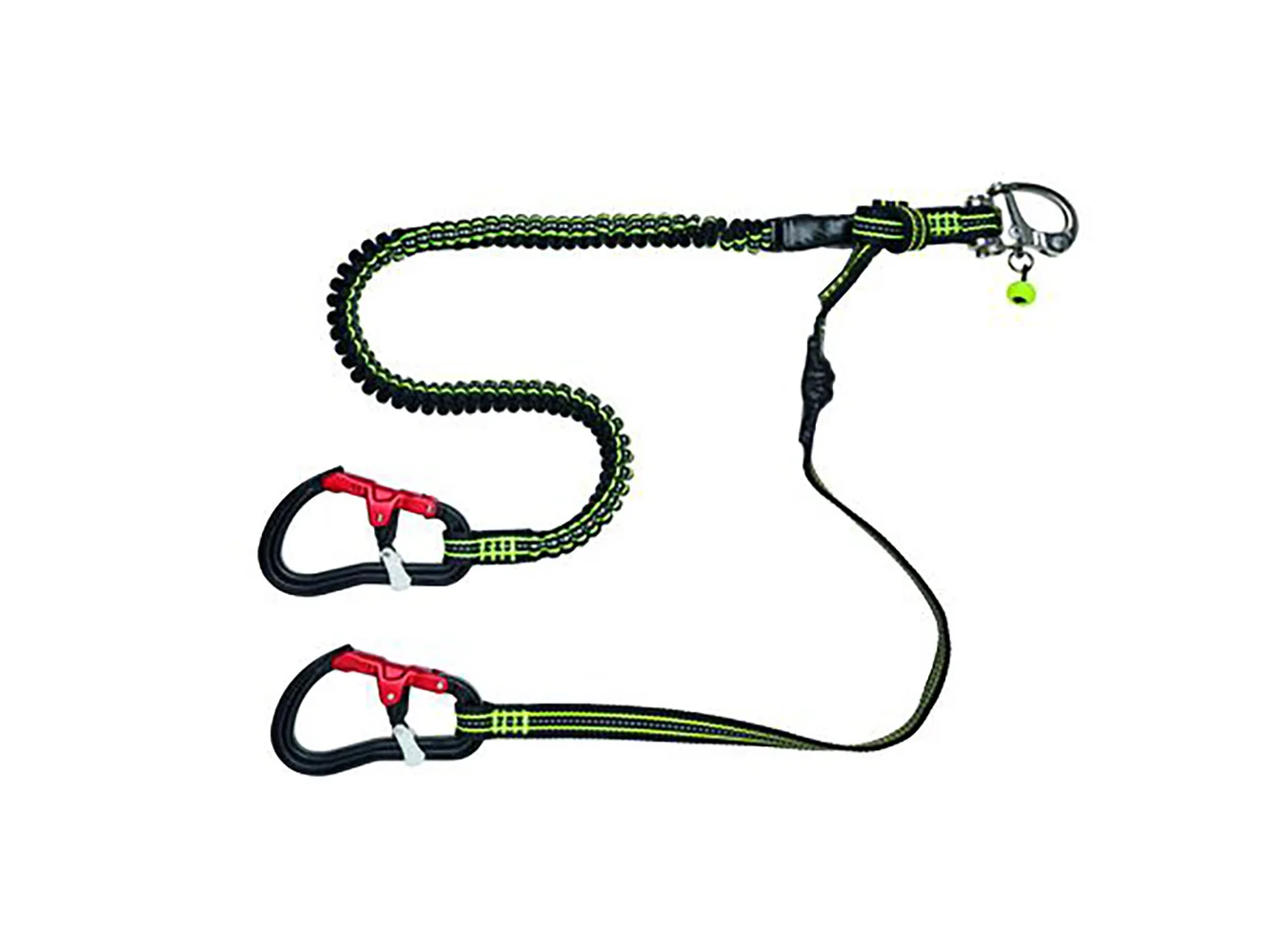 - Tether with 2 double action safety hooks and 1 stainless steel snap hook – Elastic webbing – 2m