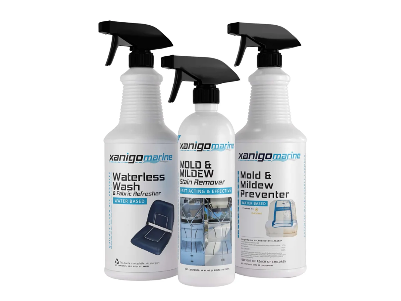 Say goodbye to mold and mildew on your boat! The Xanigo Marine Ultimate Vinyl Boat Seat Care Kit is here to save the day. This kit includes everything you need to remove and prevent unsightly mold and mildew on your vinyl boat seats, life jackets, canvas, bumpers, carpets, and other areas with high moisture.