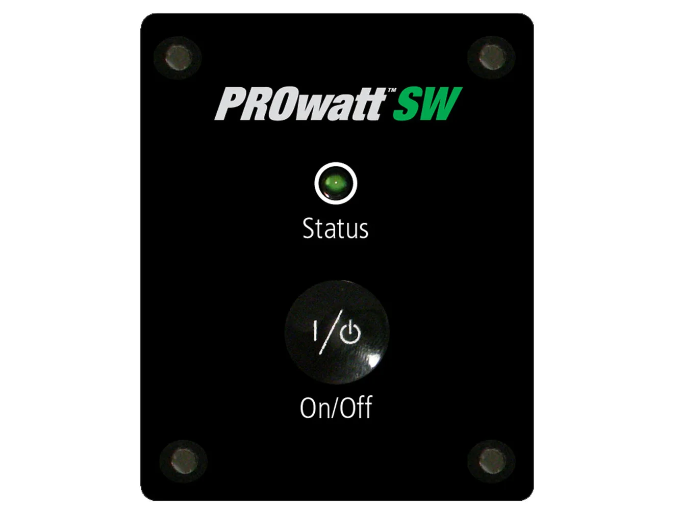 The Prowatt SW remote provides the convenience of a simple on/off remote function to the user. It also has an automatic ignition lockout feature to shut down the inverter’s output when the vehicle’s ignition or a 12 VDC enable is not engaged. A 25′ remote cable is included with the remote panel.