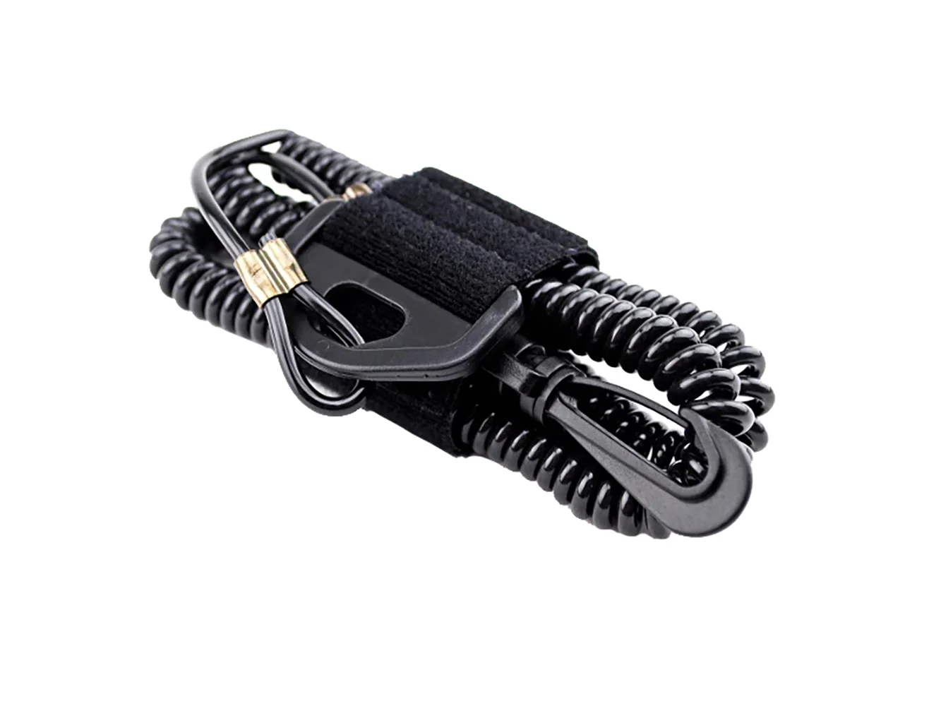 The quick connection of the leash to the boat side is a 360-degree nylon swivel hook to any pad eye or accessible seat strap. The paddle is then connected with a durable, 1-½ inch-thick adjustable velcro strap. Paddle is not included.